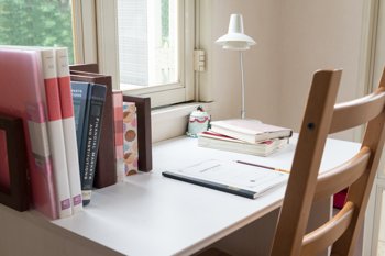 勉強スペースを確保するときは、お子さんの部屋や、リビングの一角でも構いませんので、机の上に必要なものだけを置き、勉強に集中できるようにします。